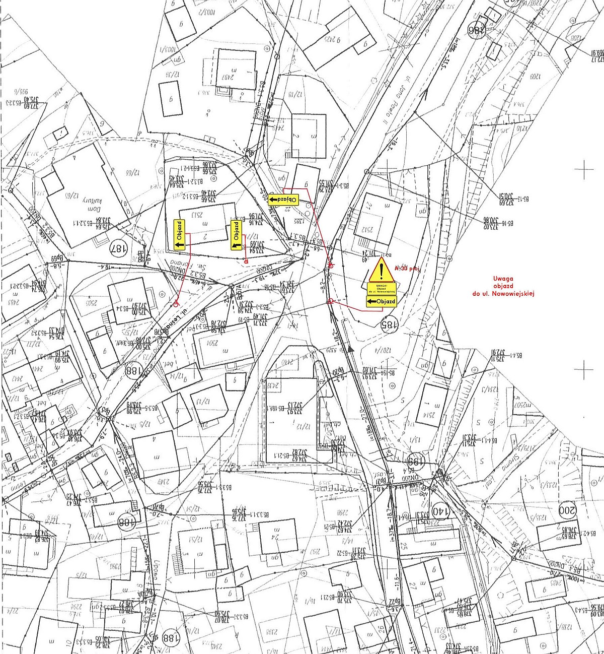 Poniżej przedstawiamy zmianę organizacji ruchu i ewentualny objazd: